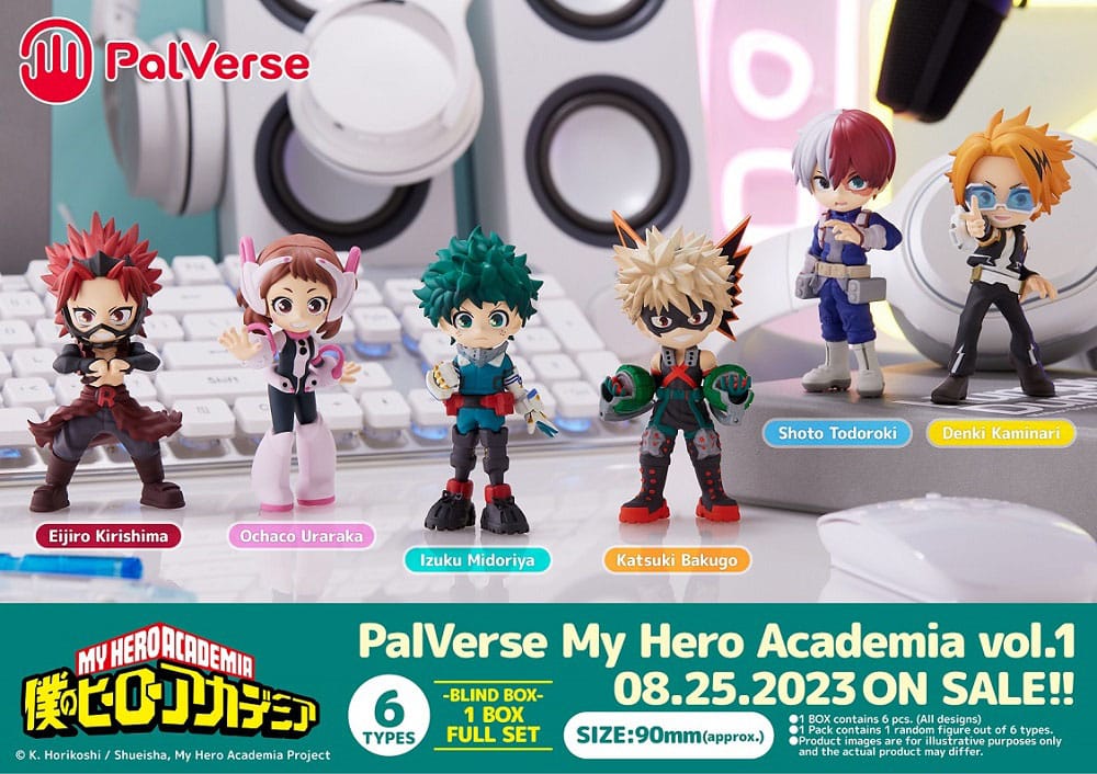 Zum Anime/Manga "My Hero Academia" kommt dieser Pack mit 10 super-niedlichen Sammelfiguren. Jede Figur ist ca. 9 cm groß.