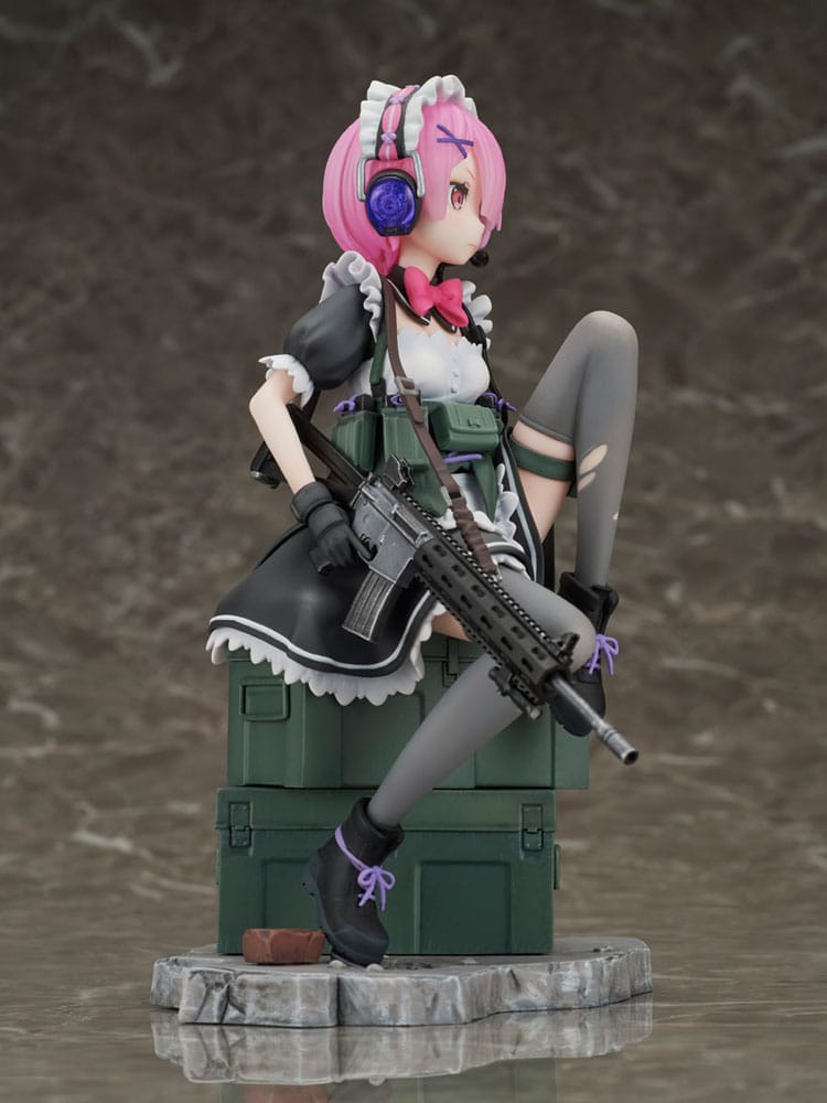 Ram hat ein markantes Aussehen, gekennzeichnet durch ihr rosafarbenes Haar und rote Augen. Wie ihre Schwester Rem ist Ram eine Oni, aber sie verlor ihr Horn bei einem Überfall auf ihr Dorf, als sie noch ein Kind war. Dieses Ereignis hat ihre Stärke und Fähigkeiten als Oni stark beeinflusst, obwohl sie nach wie vor ein furchterregender Charakter ist. Ram trägt normalerweise die standardmäßige Dienstmädchen-Uniform, die zu ihren Aufgaben im Haushalt der Mathers gehört, aber ihre imposante Präsenz lässt sie hervortreten, besonders im Vergleich zu ihrer zurückhaltenderen Schwester.
