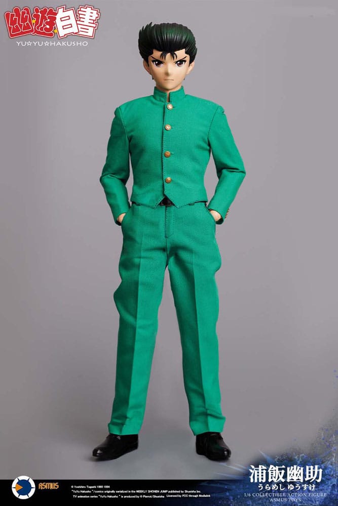 Yuusuke has brown eyes and short black hair, which he usually keeps slightly-spiked with hair gel. He has around half a dozen small bangs which he doesn't keep spiked. Instead of wearing the school-issued blue uniform of Sarayashiki Junior High, he wears a identically-designed green uniform. He does this in direct rebellion of the school's strict dress code. Throughout the series, Yuusuke's clothing changes, but he usually wears some type of fighter's garb. Yuusuke looks rather-skinny, a stark contrast to his unusual strength. At the beginning of the series, he was also quite short as seen when Keiko points out he was shorter than she was.
