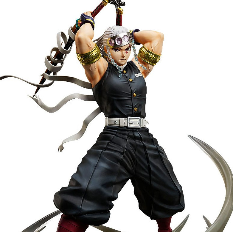 Tengen is posed drawing his blades, with unravelling cloth dynamically sculpted around each blade. His strong forward-facing gaze is also sure to impress.