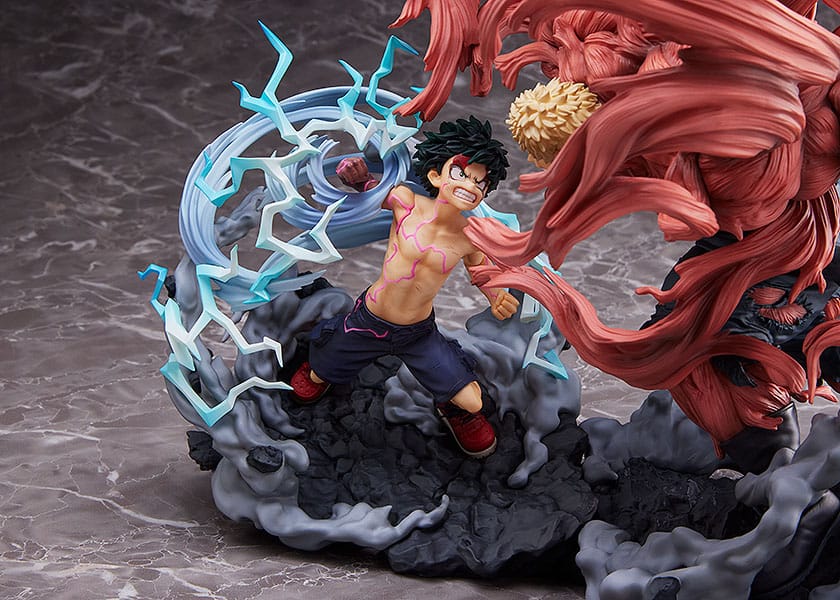 Relive the action with S-FIRE's realistic modeling technology and vibrant color techniques! See Deku's unwavering tenacity etched across his face and the ferocity of Muscular's rippling armor of flesh as their Quirks collide!
