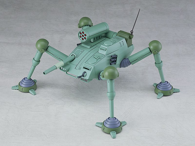 El modelo nos llega desde la anime "Fang of the Sun Dougram". Usando la tecnología de ensamblaje Snap-Fit no tendrás problemas a la hora de montarlo. Es transformable y no requiere pintado. Mide 10 cm de altura y viene con accesorios en una caja con ventana.