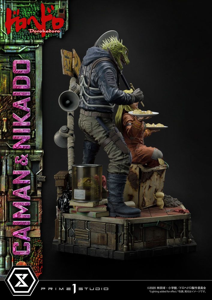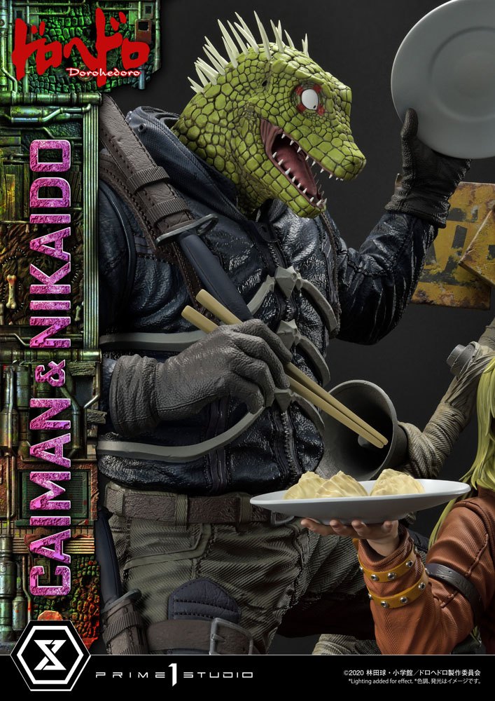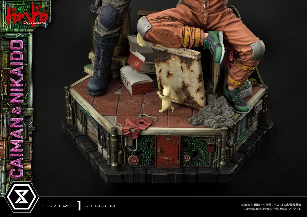 Statuette en résine à l'échelle 1/4, dimensions env. 70 x 60 x 45 cm sur socle décor. Modèle fini et peint à la main en édition limitée.